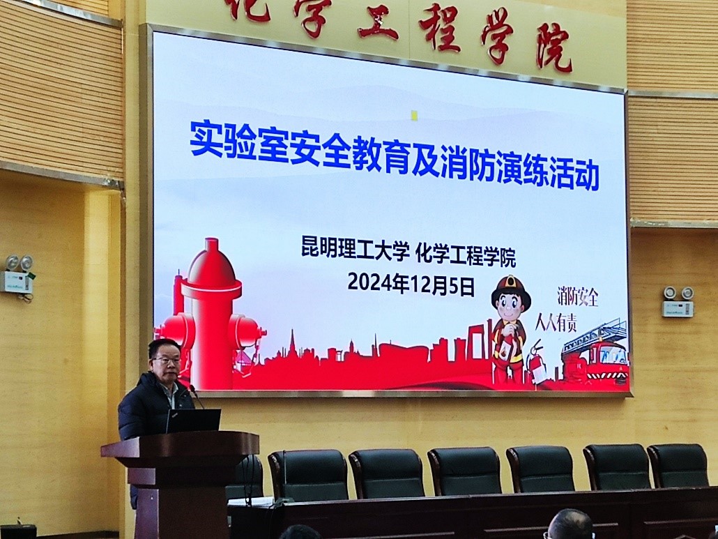 于化工楼100报告厅举行了实验室安全教育及消防演练活动,活动分为实验室安全教育培训、消防安全知识宣讲和灭火实训演练三个环节。学校实验室安全督导组长李宝才教授、昆明市消安应急服务中心高鑫主任出席活动,学院近年新入职教师以及全体2024级研究生新生,共200余人参加活动。活动由糖心vlog