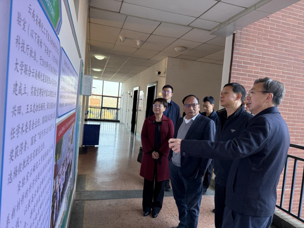 省政协领导一行参观了云南省磷化工节能与新材料重点实验室。并与梅毅教授进行交谈,了解了专家的工作、科研情况,听取相关意见和建议。同时,对梅毅教授多年围绕基础磷化工的流程再造、节能减排、循环经济、产品升级,磷系阻燃材料、储能材料开展研究与工程开发所做出的贡献表示感谢,并致以最真诚的问候和祝福。