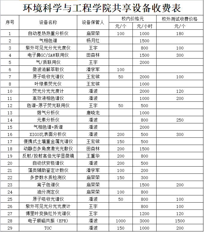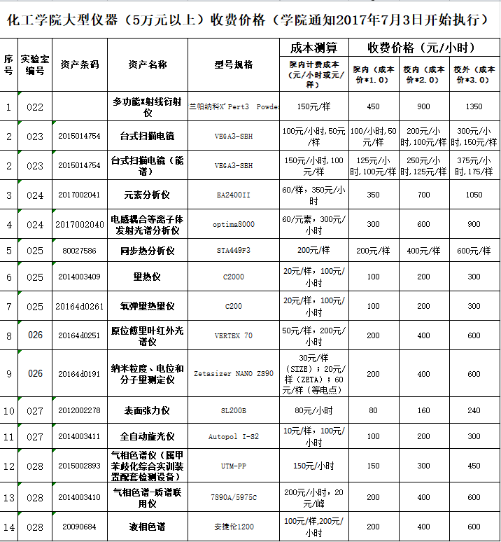 大型精密仪器实验室设备仪器收费标准