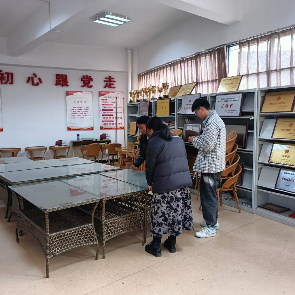 会后,学生第四党支部党员,开学学雷锋实践活动,党员同志共同打扫化工楼楼梯、大厅、并整理桌椅。